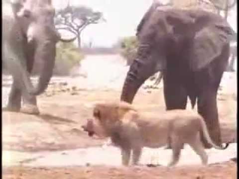 Three Elephants kill a Lion
